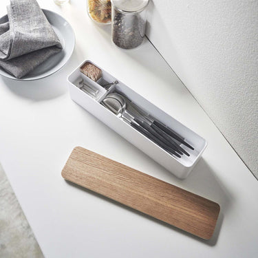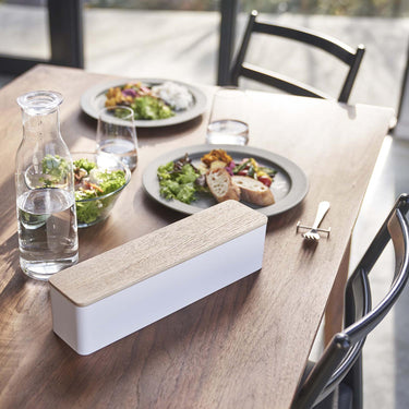 No more worrying about dust and dirt! This wide cutlery storage comes with a lid for your convenience. It can store chopsticks, cutlery, toothpicks, and chopstick rests all in one place! The cutlery case features a simple yet stylish design with beautiful wood grain. The cutlery storage section is raised for easy access and cleanliness.