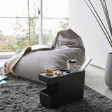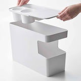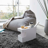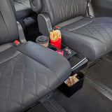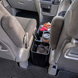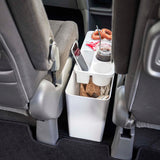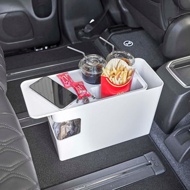Perfect for placing drinks and snacks next to the driver's seat or rear seats. Its slim shape is easy to use even in the back seat. The large opening allows for disposal of plastic bottles. The lid slides open, making it accessible from the back. It features a groove for propping up your smartphone. The drink holder can accommodate a 500mL plastic bottle or a 500mL can. It can be disassembled for thorough cleaning. Comes with parts that can be fixed to the floor. It can also be used as a coffee table with a built-in bin in your living room.