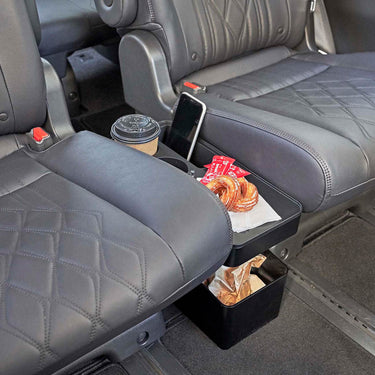 A multi-functional console bin with a sliding lid, just the right size for a family car.