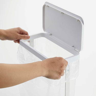 Just cover the main body with a 10L to 20L bin bag and put on the lid! It's the perfect compact bin for under the sink. The lid helps to keep odours contained, which is a great feature! Its slim design allows it to fit anywhere and save space. Changing the bag is a breeze! Its simple structure also makes it easy to clean!