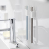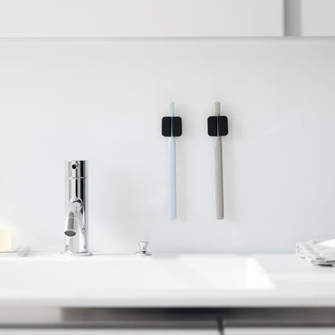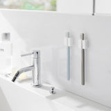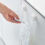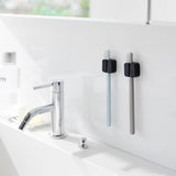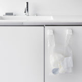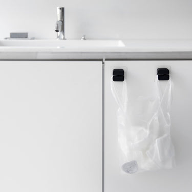 This hook can be easily attached to surfaces such as washbasin panels using a film hook. It can be used vertically or horizontally depending on the item you wish to store. Made of soft silicone, it can hold items such as towels, toothbrushes, razors, and hair ties. If you hang a towel, it becomes a towel holder, and if you hang a plastic bag, it becomes a simple rubbish bin. In the living room, it can also be used to store electrical outlets. Whether used in pairs or individually, this silicone hook is versatile.