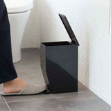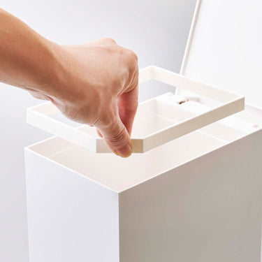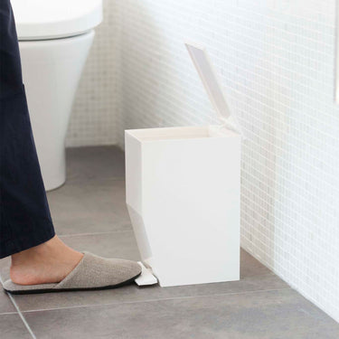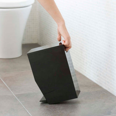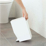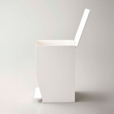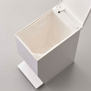 Its simple design allows it to fit neatly into your bathroom. The opening angle when you step on the pedal is about 70 degrees, making it easy to dispose of waste. It also has a handle on the back, making it easy to move. When setting the bag, the lid opens more than 90 degrees when you open it without stepping on the pedal. The bag-holding ring is easy to handle with fingers. The inside is smooth and free of bumps, making it easy to clean.