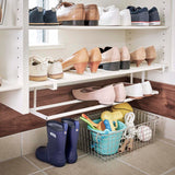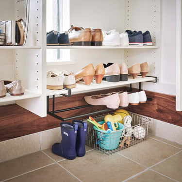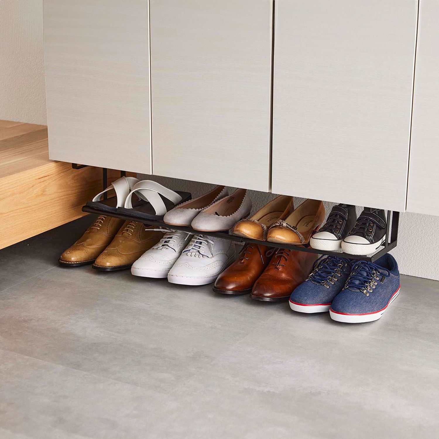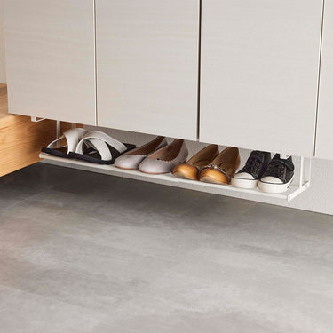 Make efficient use of the space under your shelves with this floating, extendable shoe rack.