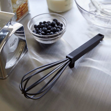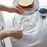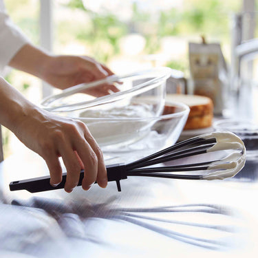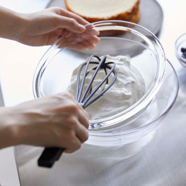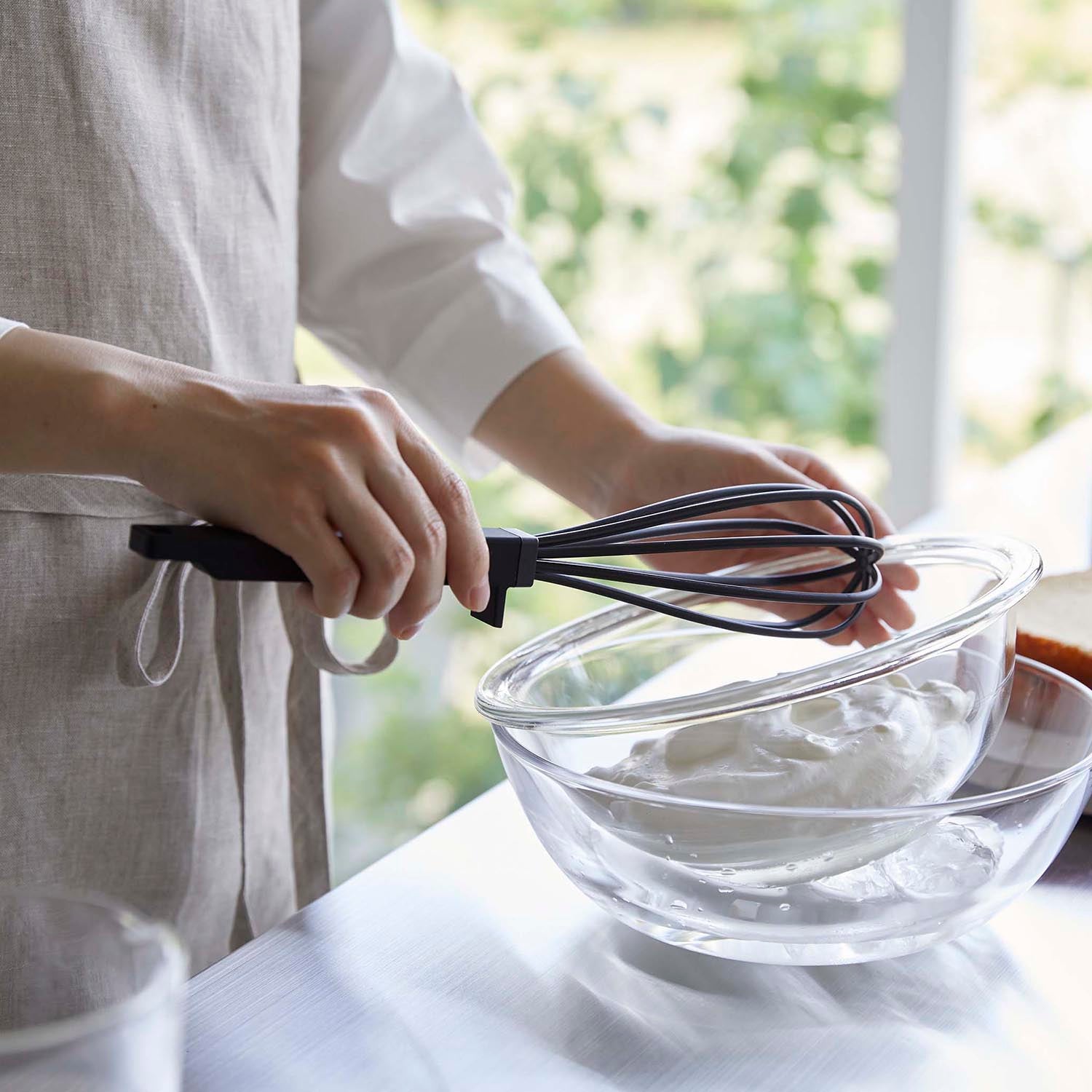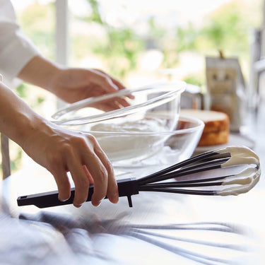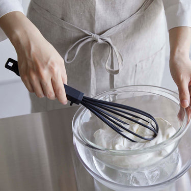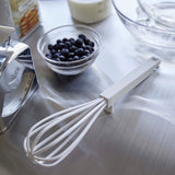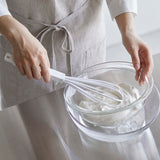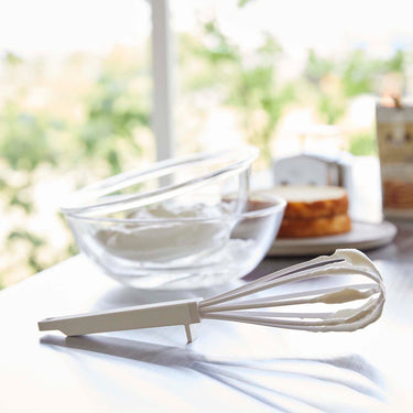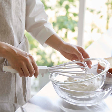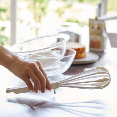 This whisk is made of nylon, making it gentle on surfaces such as glass bowls. The silicone handle makes it easy to hold, allowing you to whip up cream or egg whites beautifully. The floating tip keeps it off surfaces, ensuring cleanliness. It's also handy for mixing ingredients and can be washed in a dishwasher.