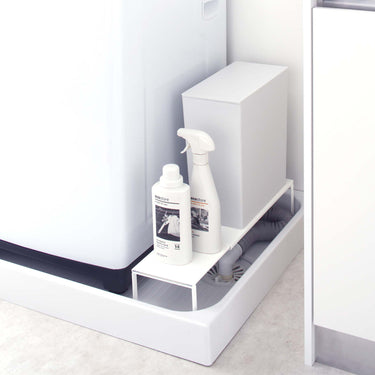 This rack allows you to effectively utilise the space above your washing machine's drain outlet and hose as storage, while keeping them out of sight. Its expandable design means it can be adjusted to fit the size of your washing machine and the internal dimensions of your drip tray.
