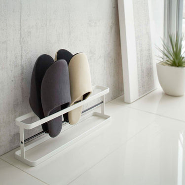 This slipper rack can store up to four pairs of slippers by stacking them sole to sole. Its slim, horizontal design makes it easy to place in hallways or living rooms without taking up too much space, ensuring a neat and tidy storage solution. With a sense of stability, this slipper rack prioritises ease of use and functionality.