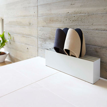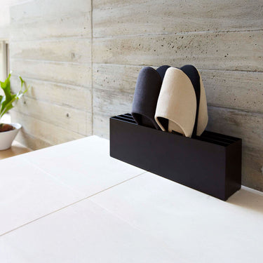Its slim, horizontal design allows for neat storage without taking up much space in your entrance hall, corridor, or living room. It's stable, easy to use, and functional. You can store up to 4 pairs of slippers by stacking them sole to sole.