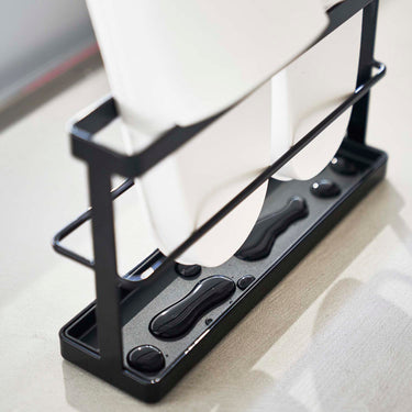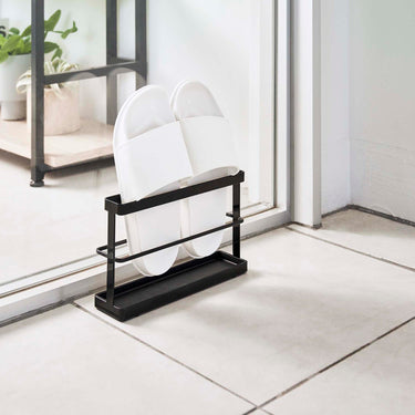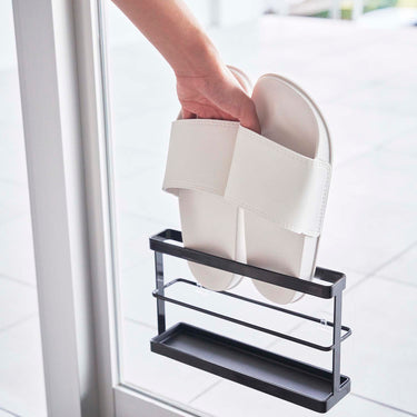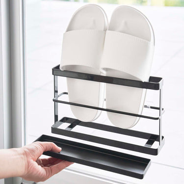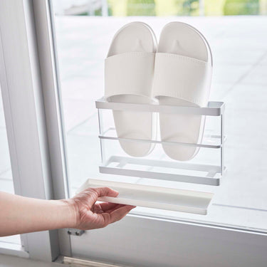 This 2-way design allows you to attach it to a window using the film hook or simply place it on the floor, depending on where you want to use it. You can always step outside with dry veranda slippers. It is designed so that the underside of the slippers does not touch the window glass. It can also be used on the floor. The tray catches any rainwater etc. that gets onto the veranda slippers, so it can be used indoors as well. The tray is removable for easy maintenance.