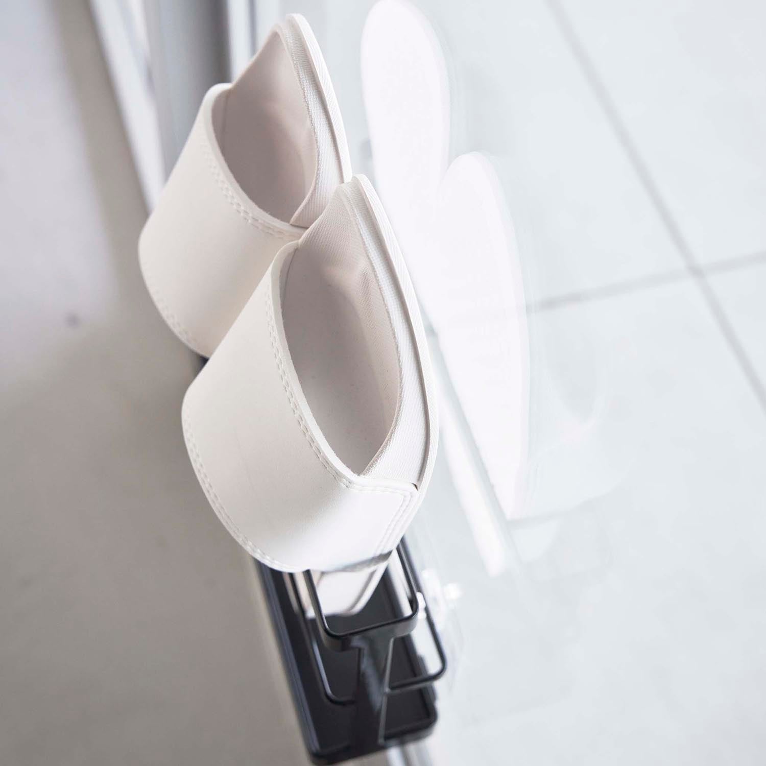 A rack that allows you to store your veranda slippers off the ground using film hooks.