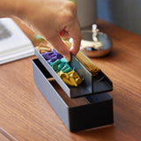 A storage tray with compartments, allowing you to organise your incense by scent or type.