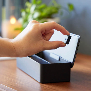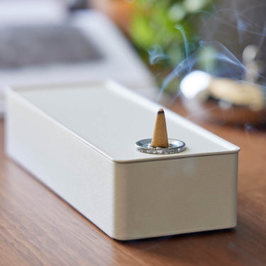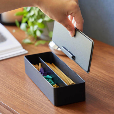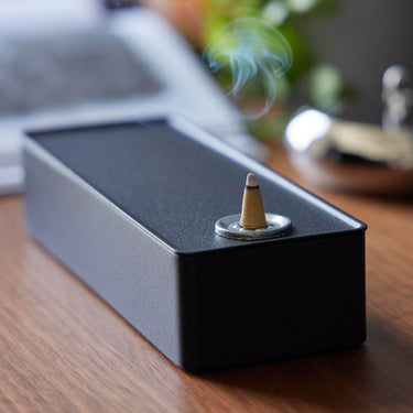 A stylish incense storage case that allows you to burn incense directly on the lid.
