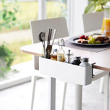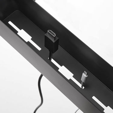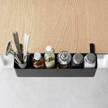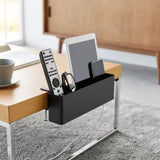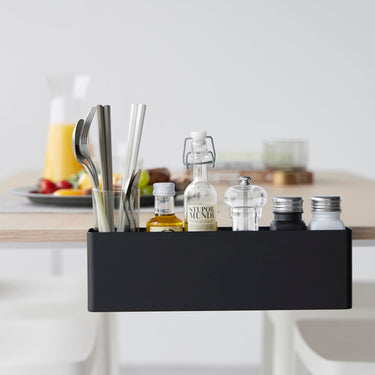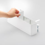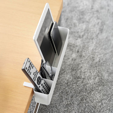 This rack can be easily attached to a table or desk using adjustable screws. It's perfect for storing small items like remote controls that tend to clutter up your space, freeing up more room on your table. The bottom features a gap for cables, allowing you to charge your tablet or gaming console while it's stored. It's also handy for attaching to a dining table to store condiments and cutlery all in one place, or next to a desk for keeping stationery tidy. The magnetic partition board is adjustable, so you can divide it to your preferred width. It's suitable for tabletops with a thickness of 1.2cm to 5cm.