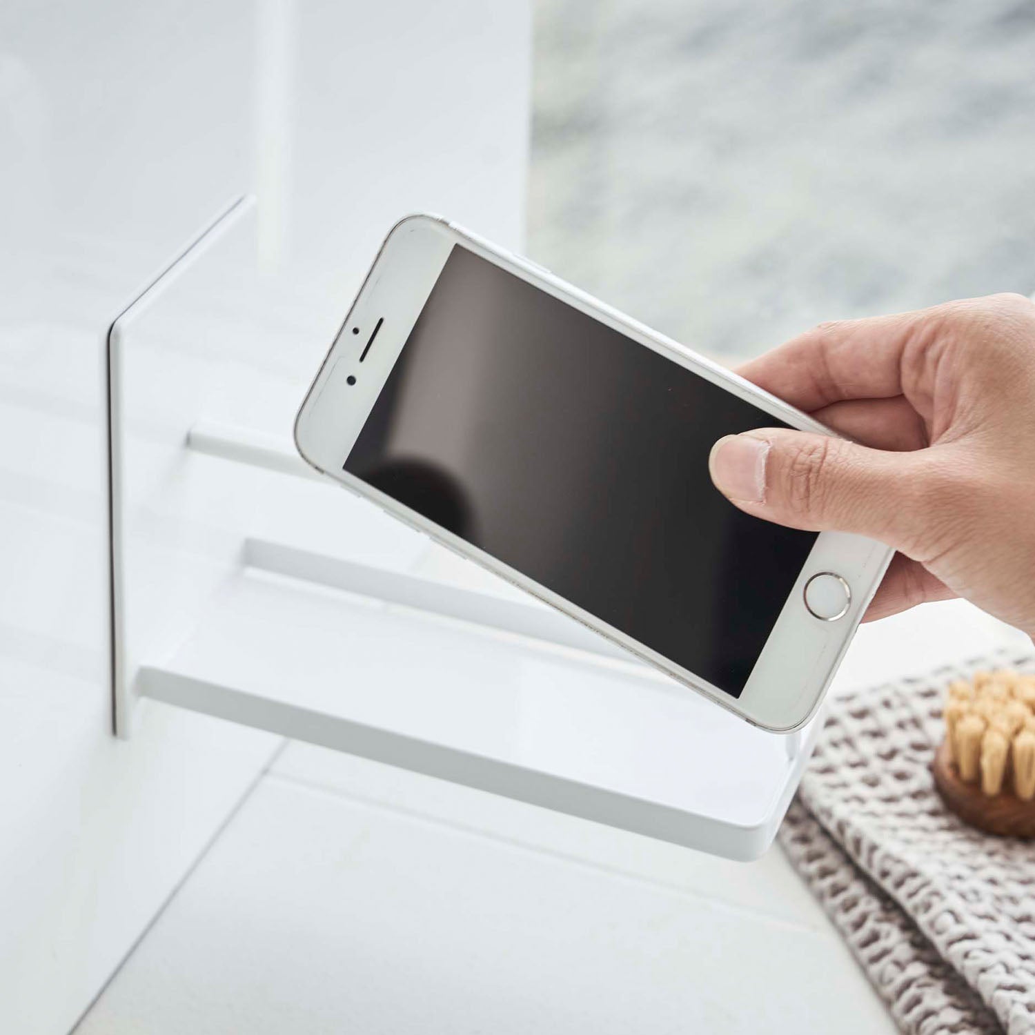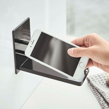 You can enjoy watching your smartphone face-on while in the bath. With a silicone cushion on the base, you can rest assured your phone won't slip. It can accommodate larger smartphones up to 16.5cm. You can place it from either side. It's designed with a drainage hole, ensuring effective water drainage.