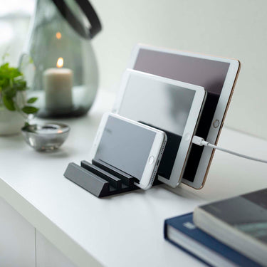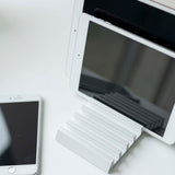 A tablet stand that can store up to 6 devices, from smartphones to tablet PCs.