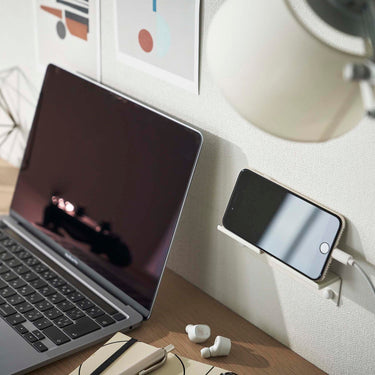 Easily installable with plasterboard pins. Store your smartphone while it's charging.