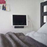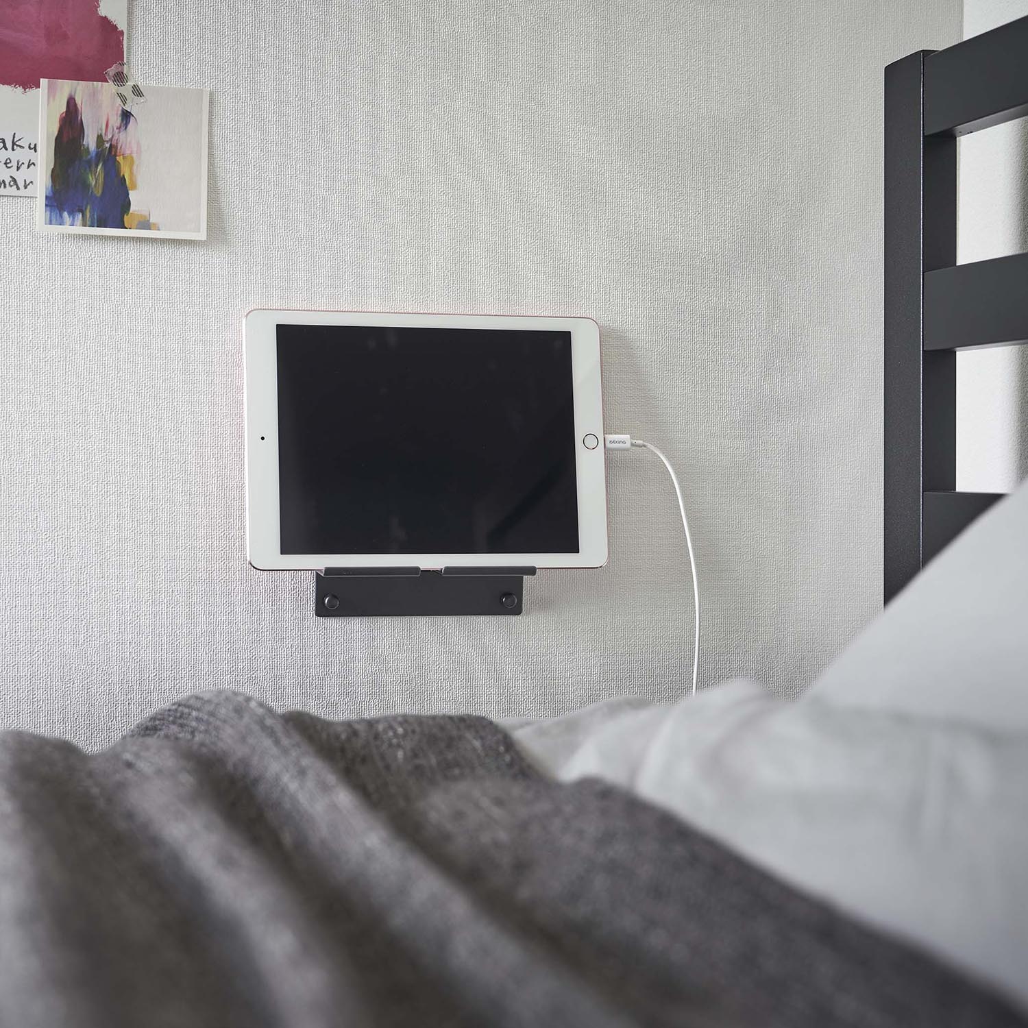 You can use it while the charging cable is attached, allowing you to store your smartphone or tablet PC while charging. It can be installed with plasterboard pins, which leave less noticeable holes. It can also be installed with wood screws.
