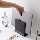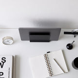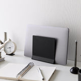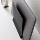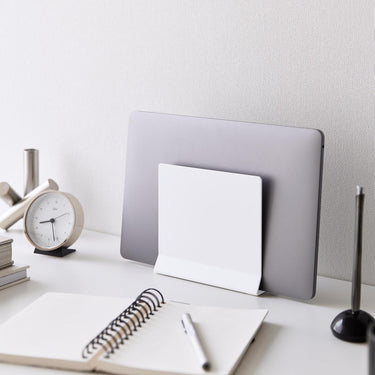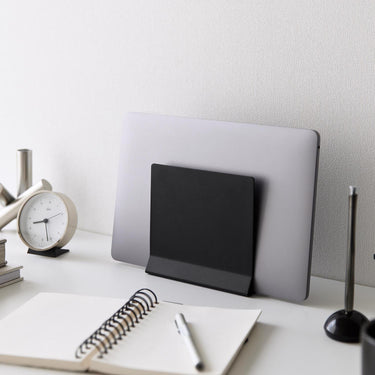 A slim laptop stand that stores simply by slotting in.