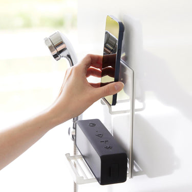 Easily attach to the wall of your bath with a magnet. You can place and use your portable speaker and smartphone, which often lack a convenient place during bathing. You can place both elongated and round speakers, and low-back speakers can be set upright. Speaker operation is possible! Your smartphone can be placed in either portrait or landscape orientation. As long as the magnet can attach, you can freely choose the location and height.
