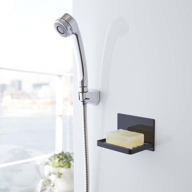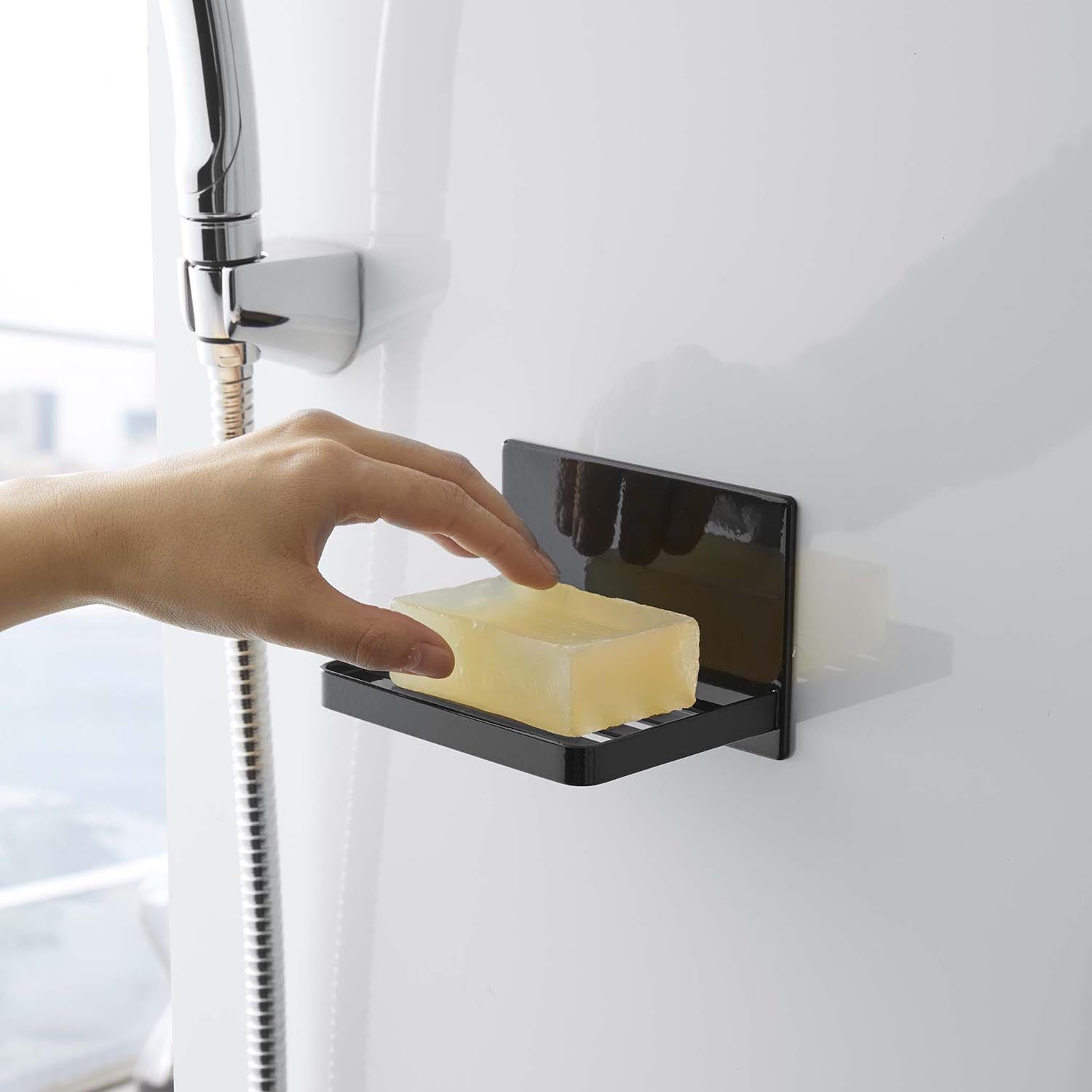 A soap tray that can be easily attached to your bathroom wall with a magnet.