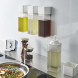 A seasoning bottle that sticks firmly to the wall with a magnet.