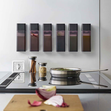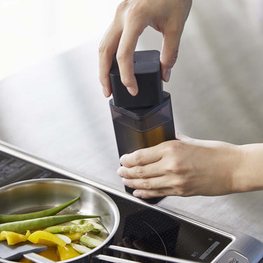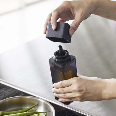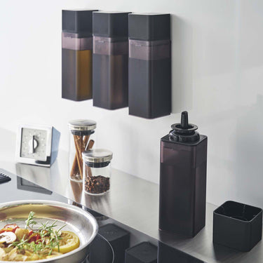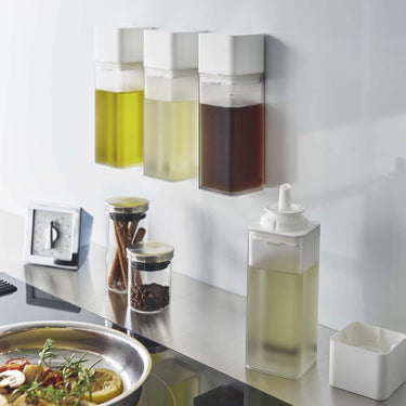 This condiment bottle easily attaches to your kitchen panel with a magnet. You can organise your seasonings by swapping them in and out. It's extremely useful on the countertop or during cooking. The cap is sealed to prevent spills even if it falls over. The lid easily opens with a light twist and closes with a simple push. All parts can be disassembled for cleaning.