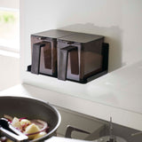 A seasoning stocker rack that easily attaches to steel walls with magnets.