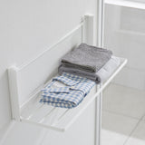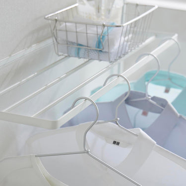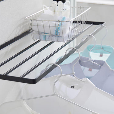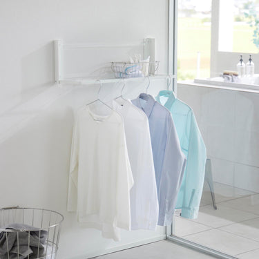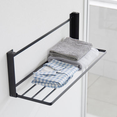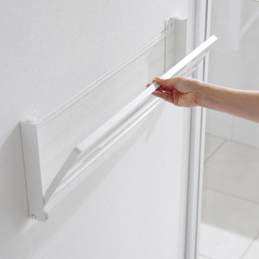 Easily installable with plasterboard pins! This convenient folding rack can be used for temporarily placing bath towels and clothes, or for indoor drying of laundry. Please note that hangers or clothes may touch the wall depending on their size. It's ready to use when you need it and folds up to a slim 4cm depth when not in use! Attach it to the wall with plasterboard pins that don't leave noticeable holes.