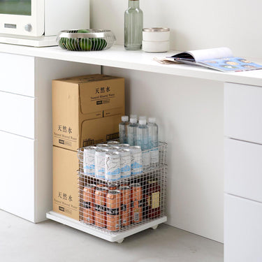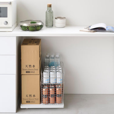 When not in use, this simple rack, perfect for an A4 printer, can be neatly stored under your desk. With a handle and casters, it's easy to move around. It's also handy for storing humidifiers or bulk-bought heavy drinks.