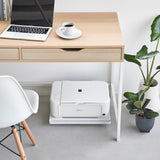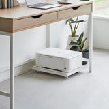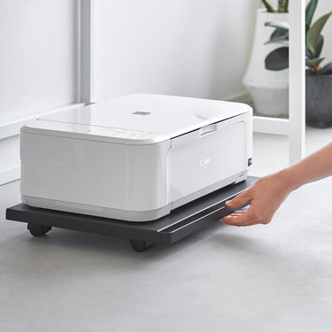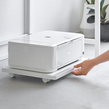 A handy rack with casters that can be pulled out only when needed. Perfect fit for A4 size printers.