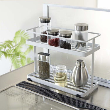 This allows you to neatly store frequently used condiments during cooking. Its slim depth design won't crowd your kitchen counter. The simple design stylishly enhances your kitchen area.
