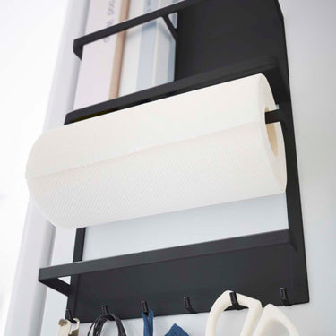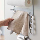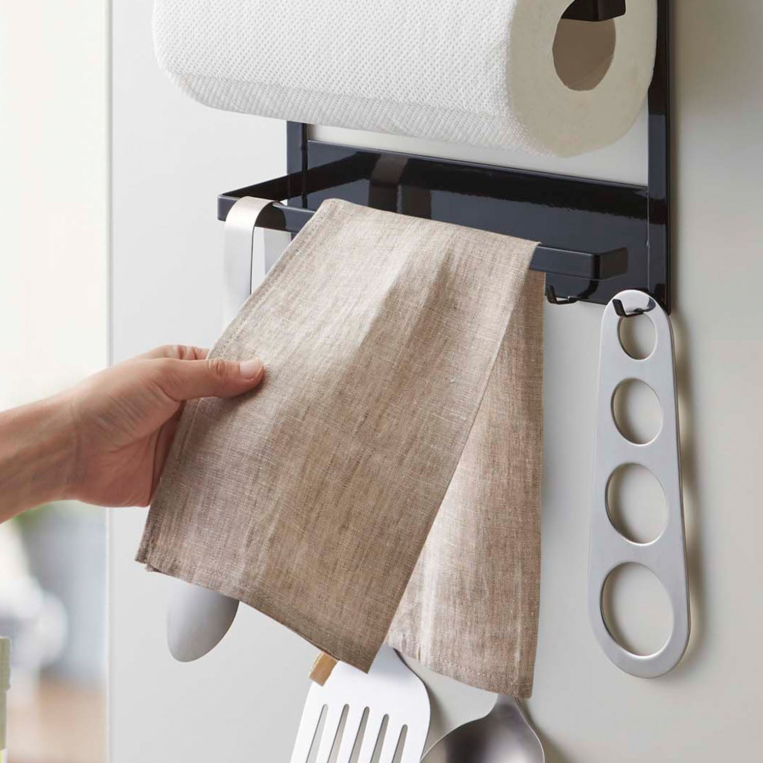 Easily attachable with magnets. A unified storage solution for kitchen essentials like cling film and kitchen paper.