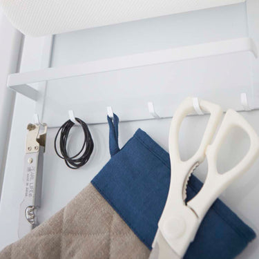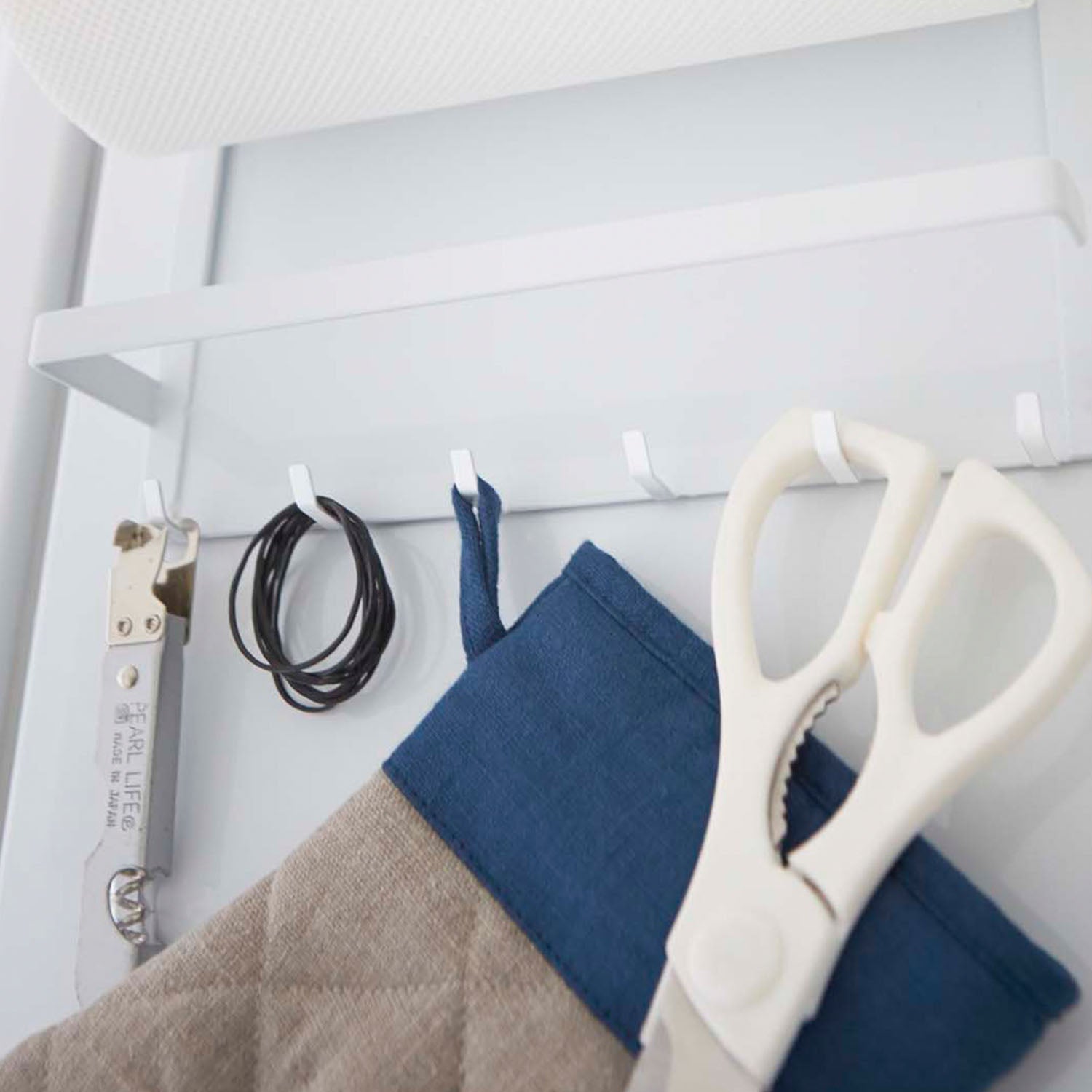 You can hang kitchen tools and rubber bands on the hooks for storage.