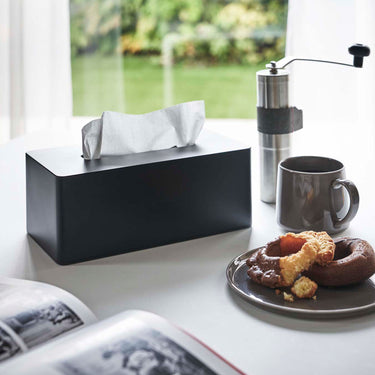 A simple tissue case that accommodates various sizes of tissue boxes.