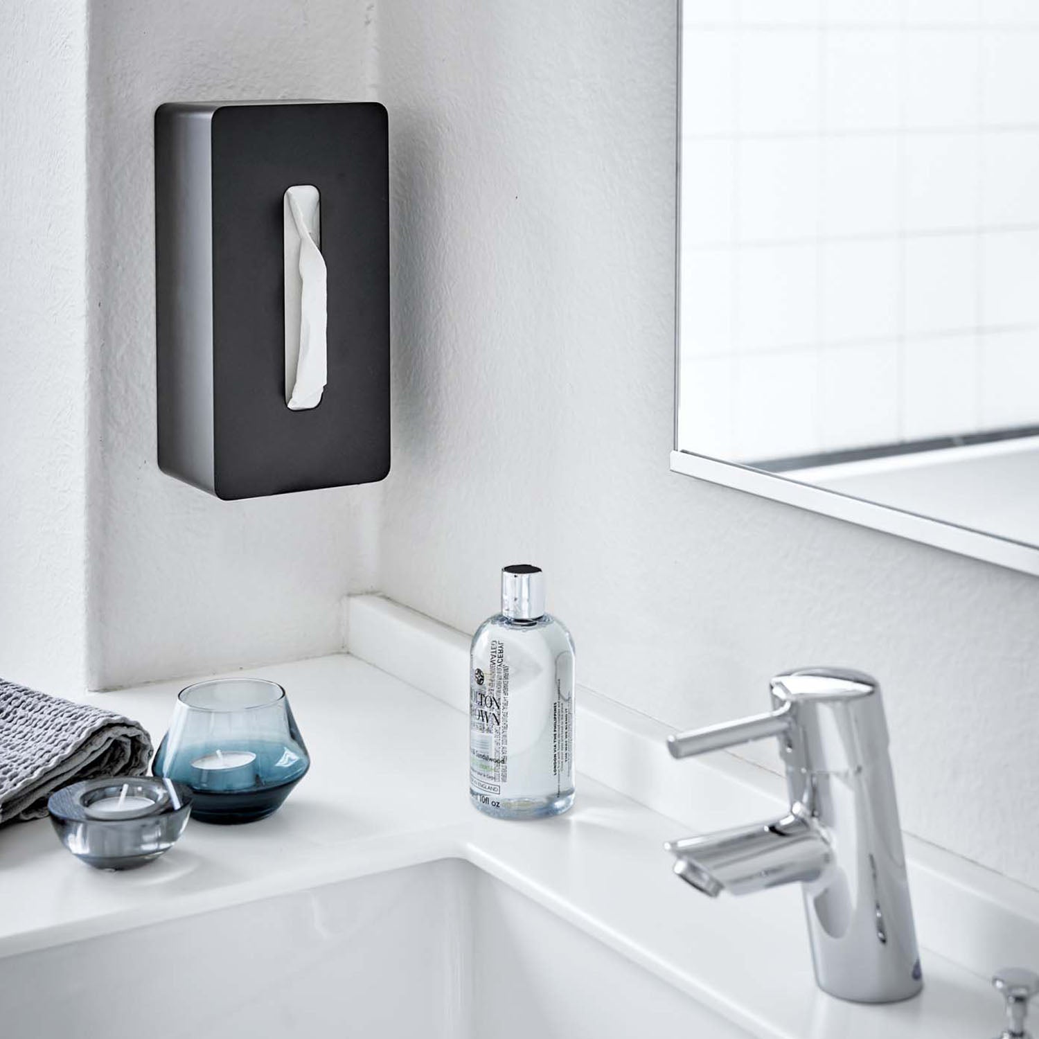 This tissue box cover accommodates various heights, from thick to thin. It can store two thin tissue boxes stacked together or a taller, moisturising type tissue box. With the use of the included partition board, you can adjust the height to three levels: 4.7/5.2/6.4cm, to match the height of your tissue box. It can also be mounted on the wall using the included wood screws.