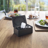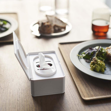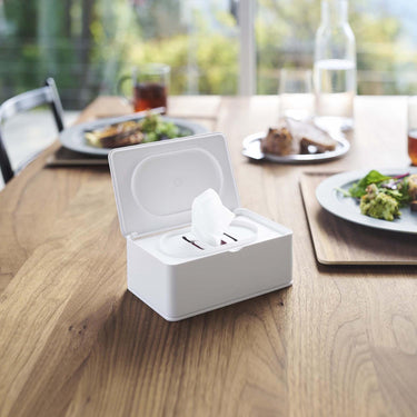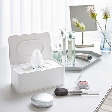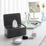 A stylish case for storing refill packs of wet wipes. The lid is designed to be difficult to open with the strength of a child or pet. Perfect for children's hand wipes, around the desk, or in the powder room.