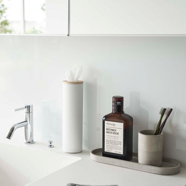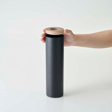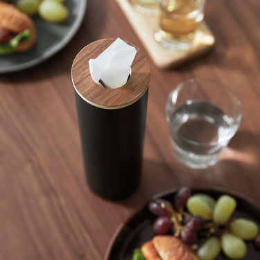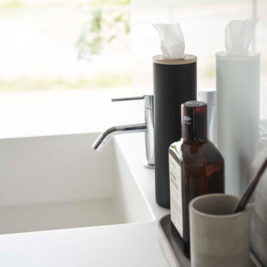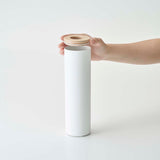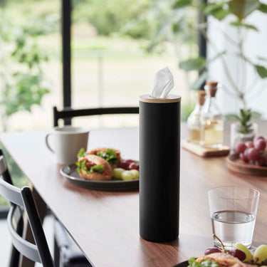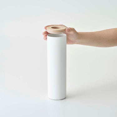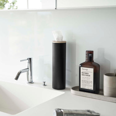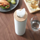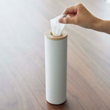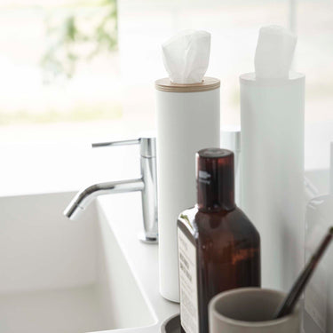 A stylish, bottle-shaped tissue case (small) that saves space due to its vertical design.