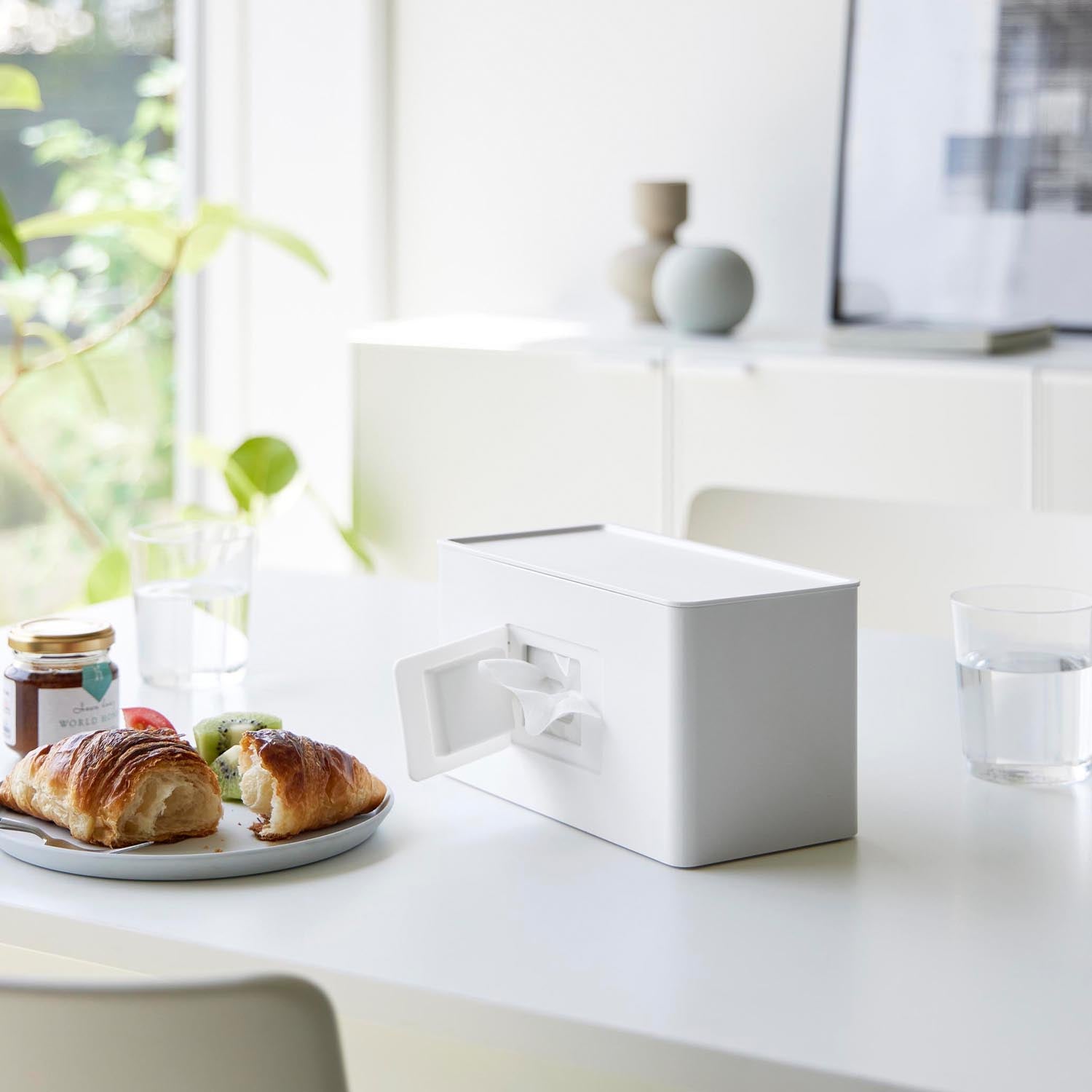 You can neatly store items on both the front and back, saving space. The wet wipe side has a silicone lid, making it resistant to drying out. The lid is designed like a tray, so you can place small items on it.