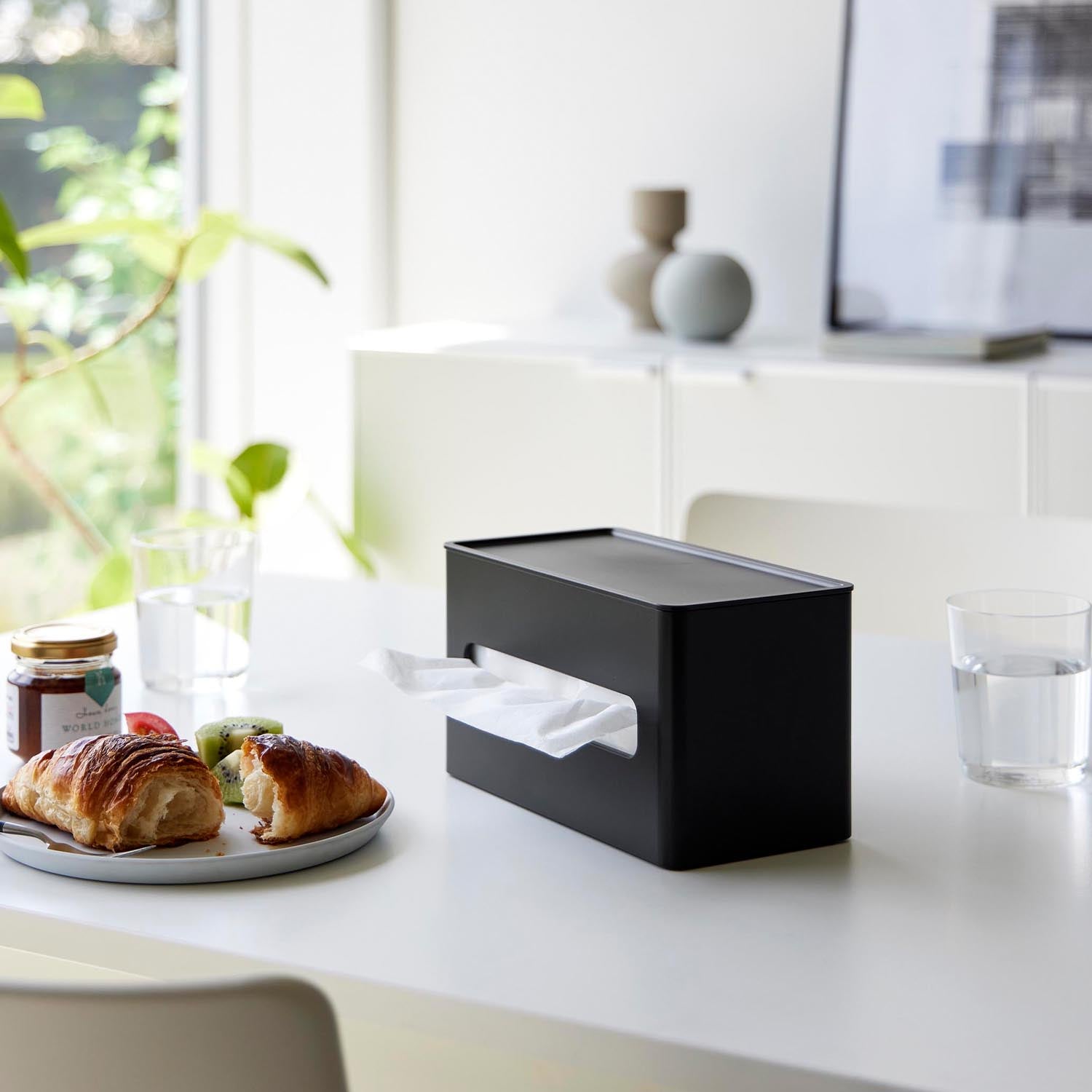 Internal Size Soft pack tissue storage: W21 x D5 x H10.8cm. Wet wipe storage: W16.5 x D4 x H10.8cm. Tray area: W20 x D9.3cm. Tissue outlet: W16 x H2.7cm. Wet wipe outlet: W5 x H4cm.