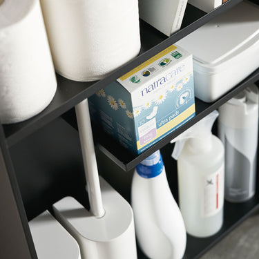 With three spacious tiers, you can store all your toilet paper and detergent in one place.