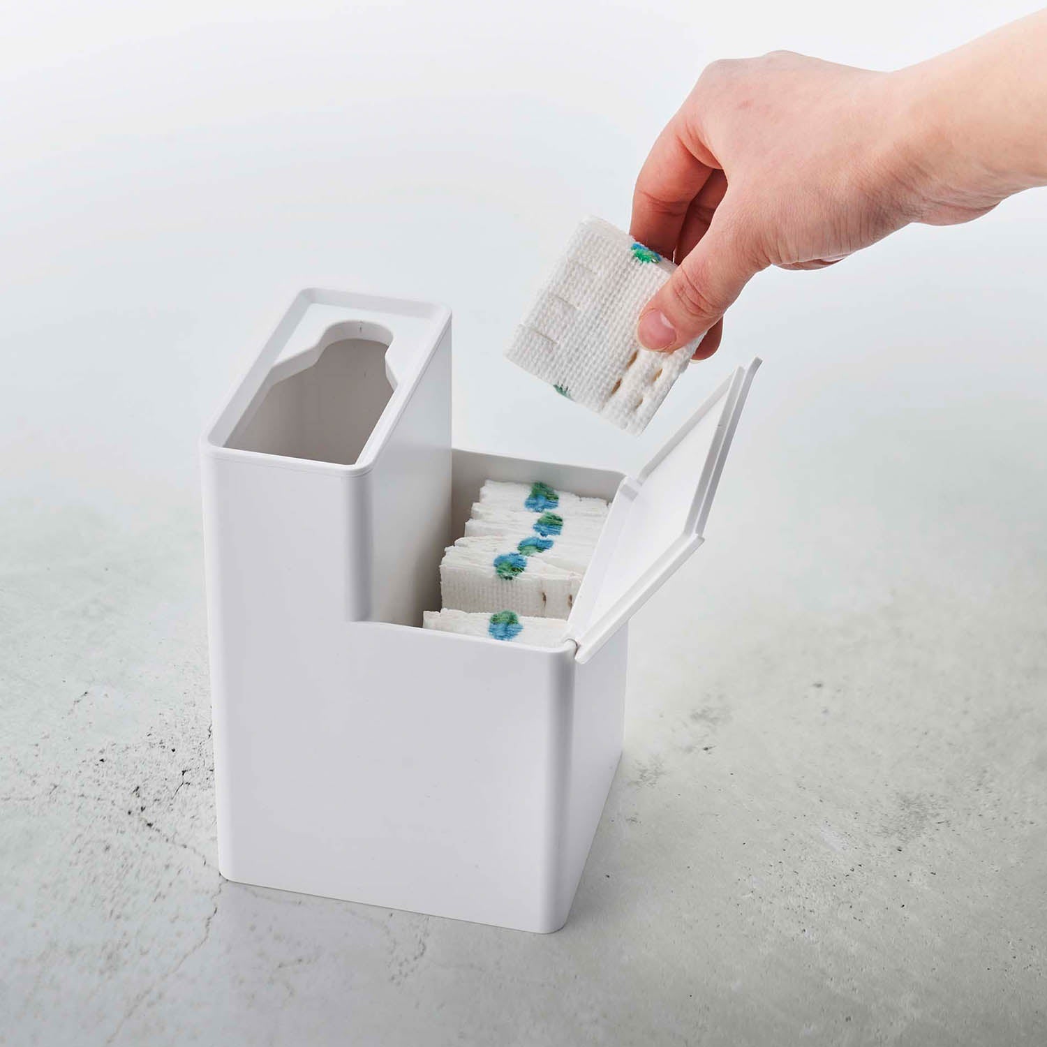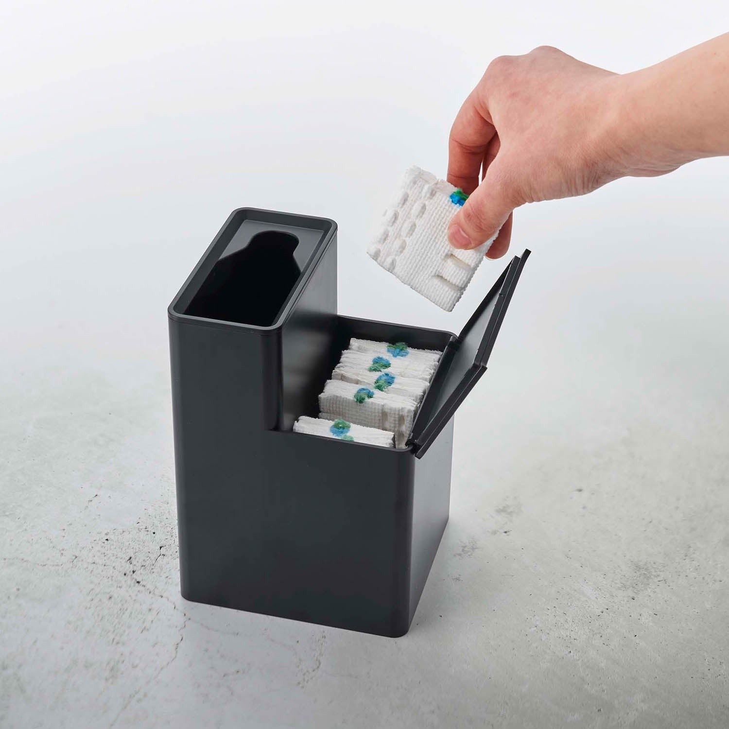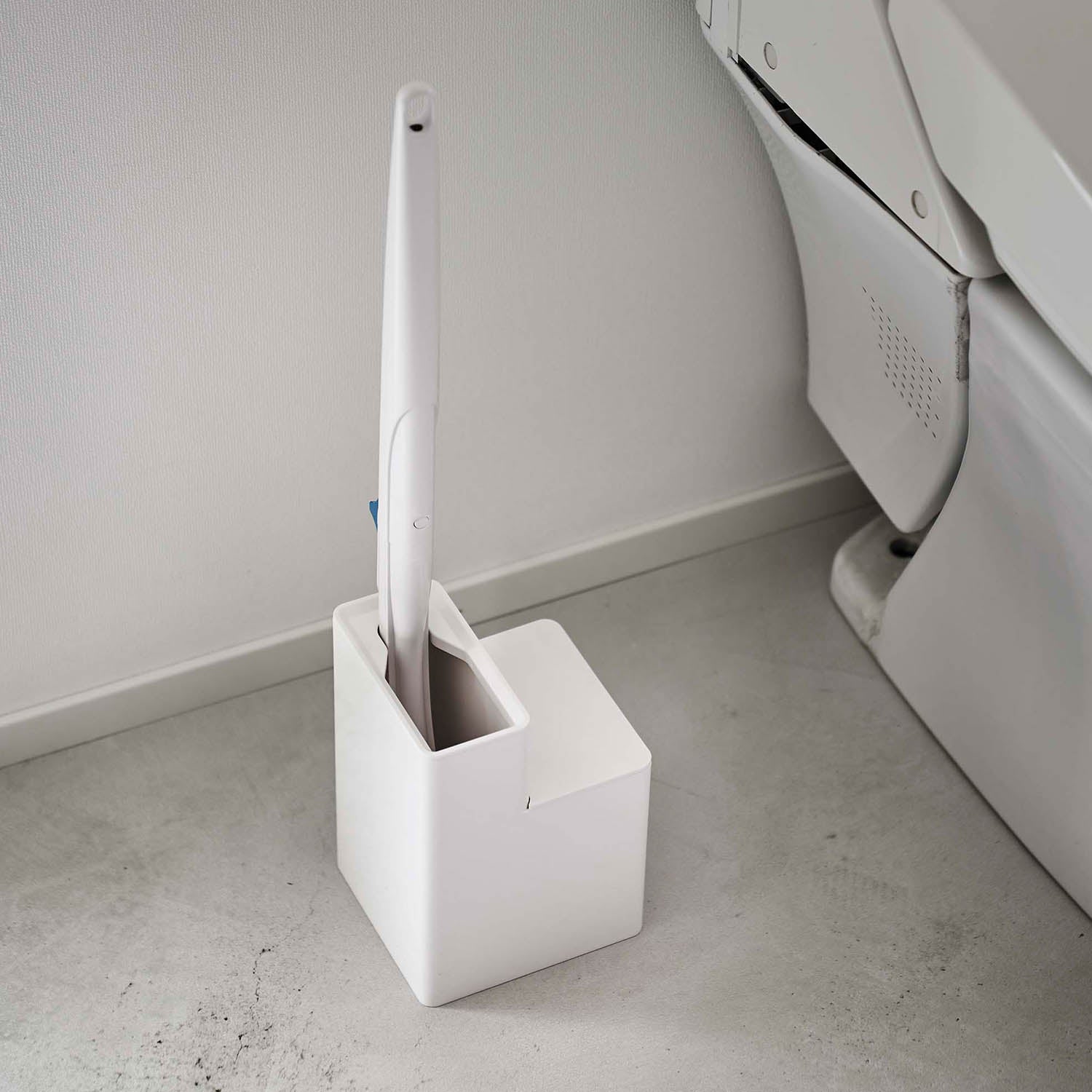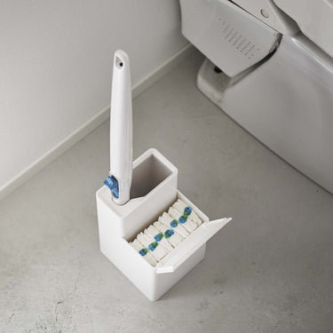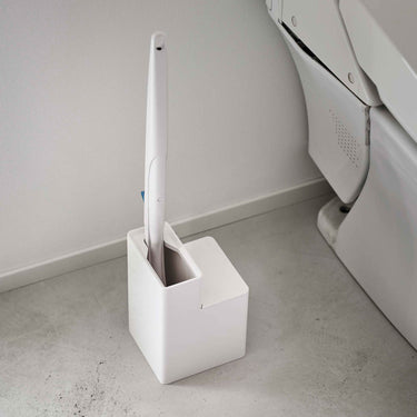 This toilet brush stand can store both the handle of a flushable toilet brush and replacement brushes together. The frame of the brush stand can be removed, allowing you to change its orientation. You can quickly and easily take out a replacement brush. The handle of the flushable toilet brush and the replacement brushes fit perfectly.