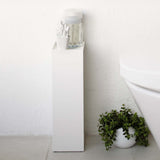 When placed in a corner, it blends beautifully into the space without being obtrusive. The top doubles as a tray, providing a place for air fresheners or deodorising sprays.