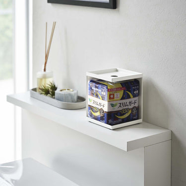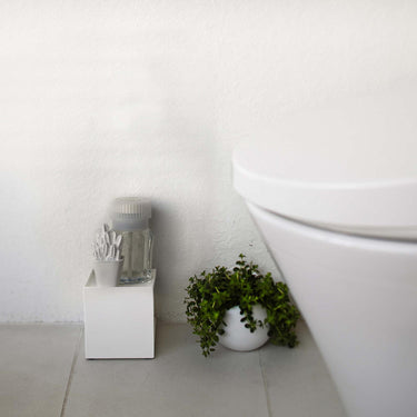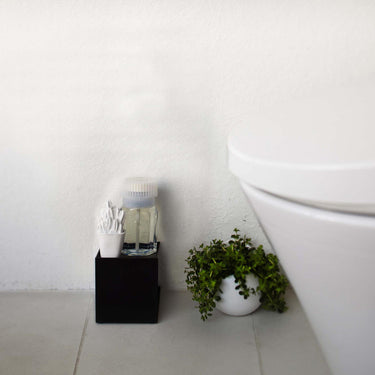 When placed in a corner, it blends beautifully into the space without being obtrusive. The top doubles as a tray, perfect for placing air fresheners or deodorising sprays. It can also be used to discreetly store items such as sanitary products. Conveniently designed with a hole for easy portability during cleaning tasks.