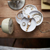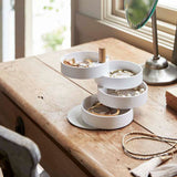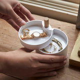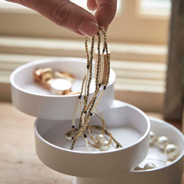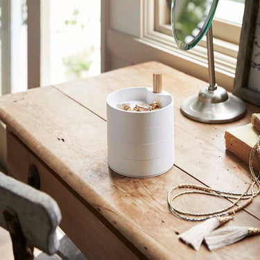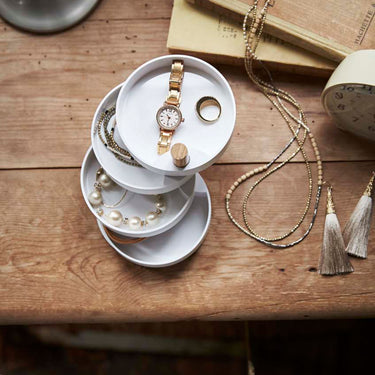 An accessory tray that allows you to store accessories and cosmetics in its four tiers. It's easy to access with its free-rotating design and boasts a beautiful form.