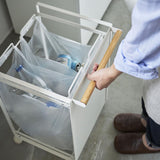 A stylish, privacy-enhanced waste sorting wagon that allows you to hang shopping bags and sort your rubbish.