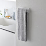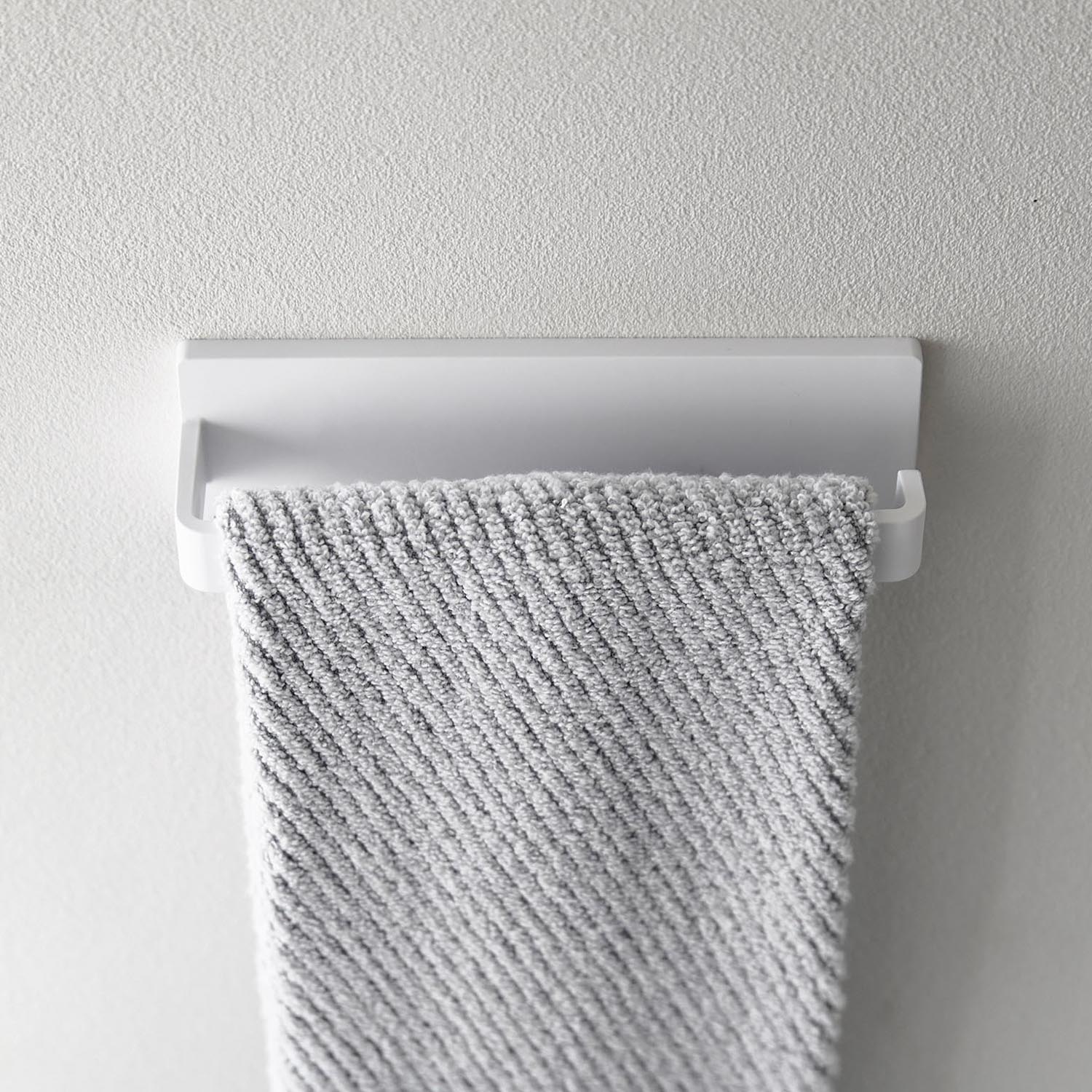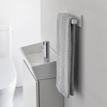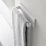 The towel bar can be installed in either direction according to your preference. You can easily hang your towel from the side. Perfect for differentiating towels among family members! It can be attached to the wall with plasterboard pins that don't leave noticeable holes. Simply hang it on the mounting piece for easy installation.