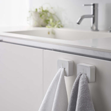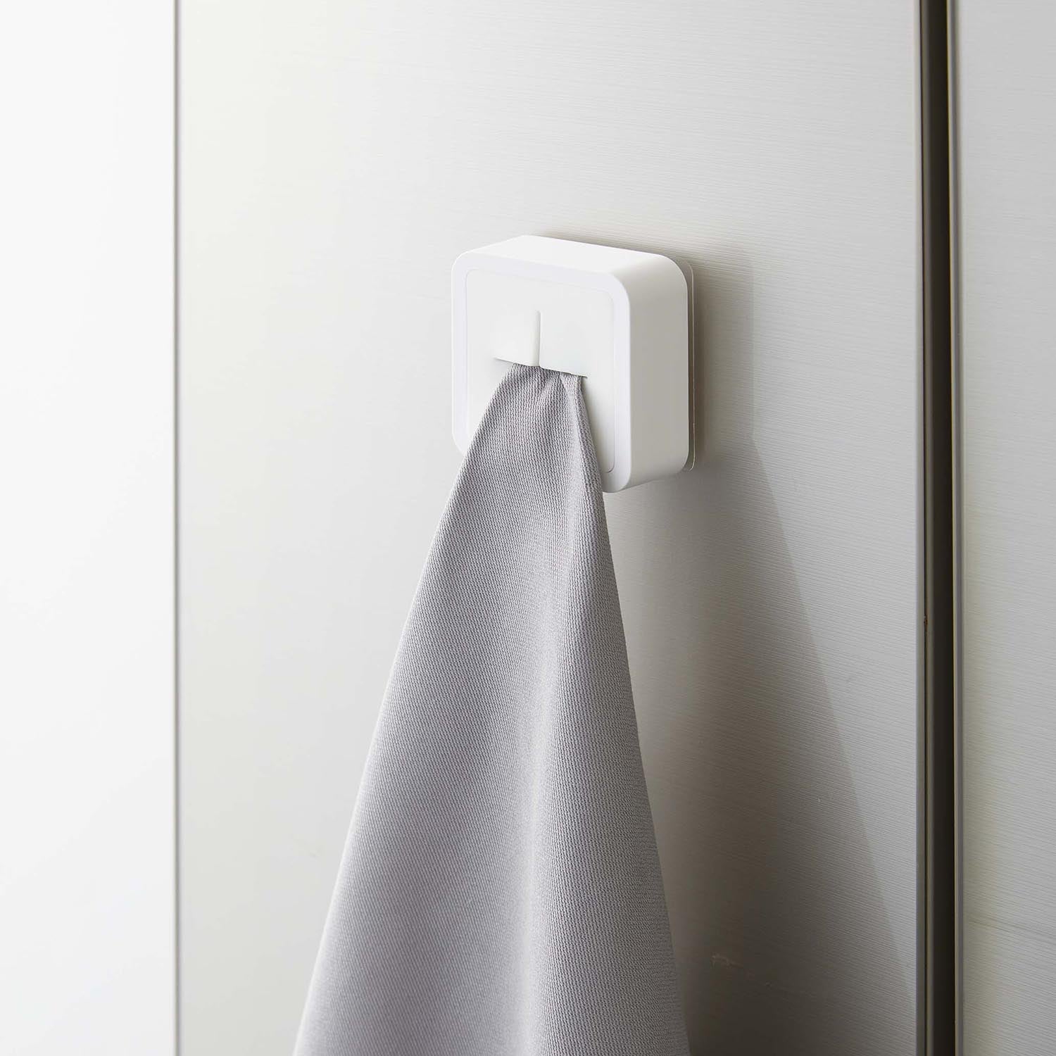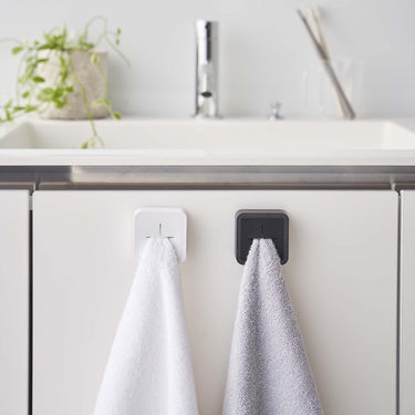 Easy to install with a film hook. This towel holder simply requires you to slide in with your finger. It can be easily attached to any glossy, flat surface by just sticking the film hook. It doesn't take up much space and is handy for separating towels. It can be attached to flat surfaces where magnets don't stick, such as sink doors and kitchen panels. Available in different colours for family members to distinguish their own. It's easy to use - just slide your towel or dishcloth in with your finger. Simply stick the film hook onto a flat surface and slide in the towel holder to use.