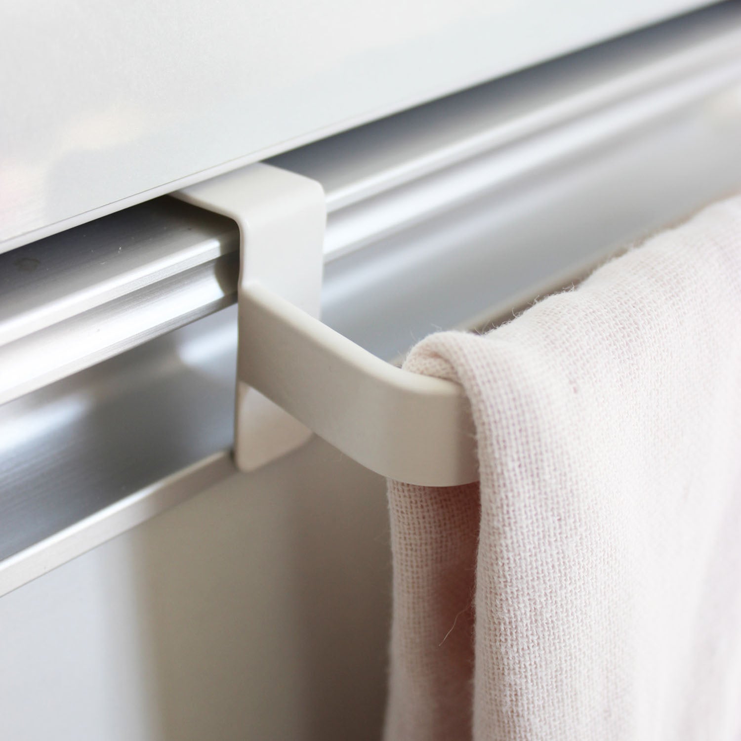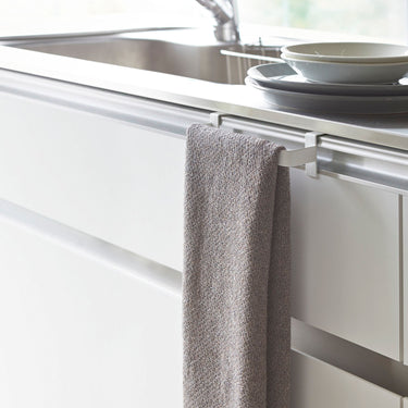 A towel hanger that can be easily attached to your sink door. It can also be fitted to rail handle type doors.
