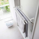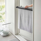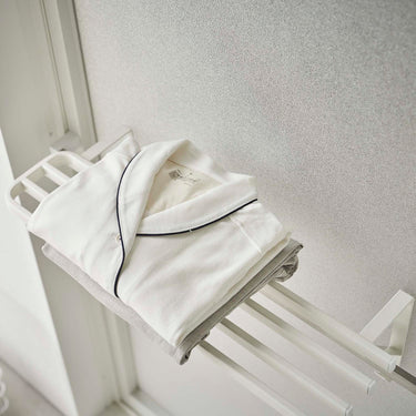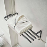 Simply slide it over the towel bar on your bathroom door for easy installation! This increases your bath towel storage. You can use your bath towel without leaving the bathroom, so you won't get cold in the winter. It can also be used as a simple shelf for placing clothes. The structure makes it easy to quickly hang a bath towel from the side. It comes with hooks, so you can store bathroom items and cleaning tools.