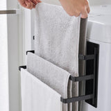 A set of three magnetic towel hangers that fit perfectly on the curved surface in front of your washing machine.