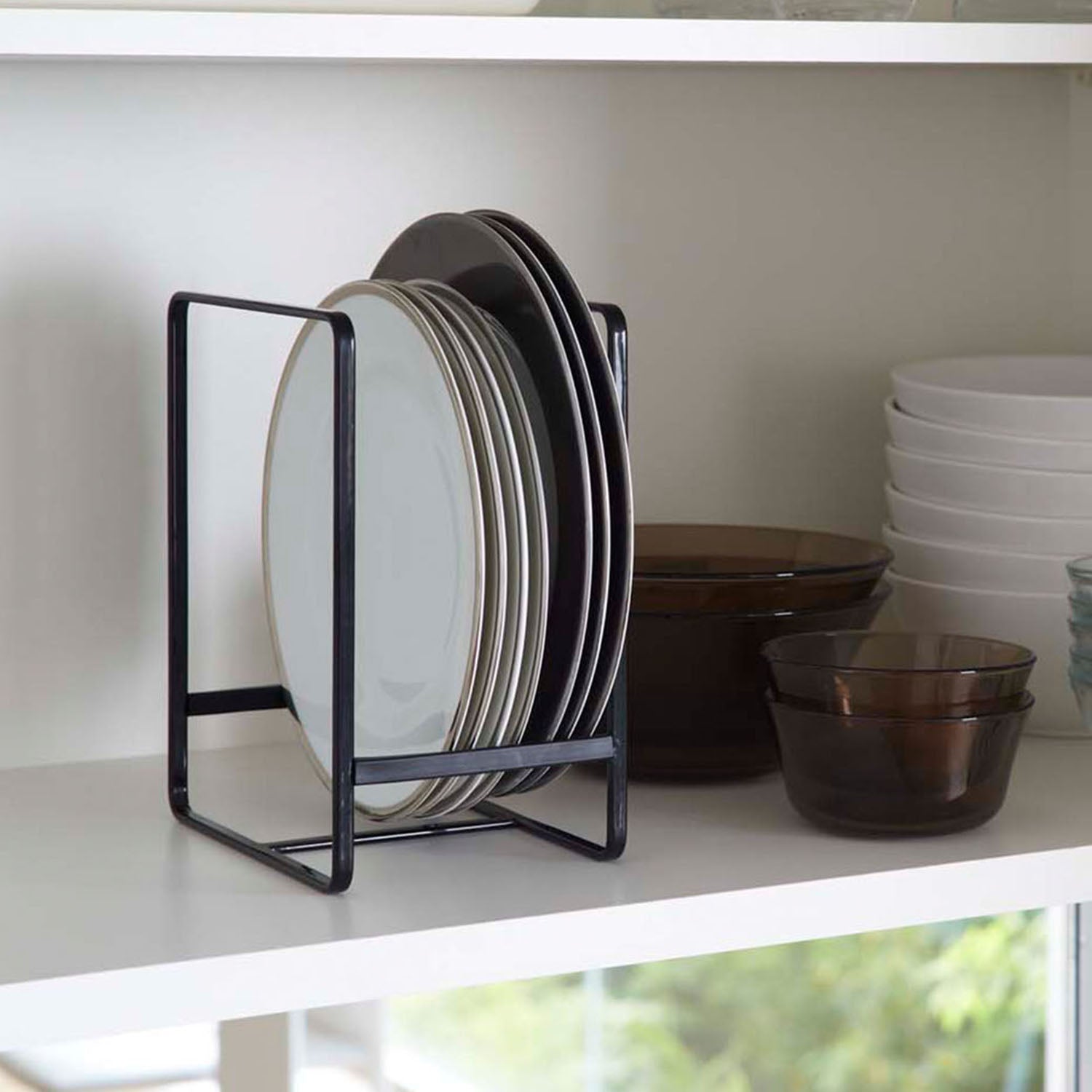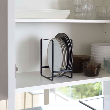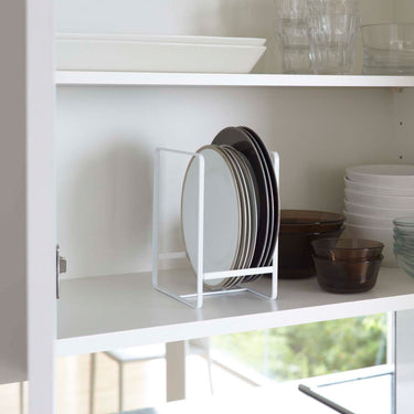 You can store everything from large to small plates upright, making it easy to take them in and out.